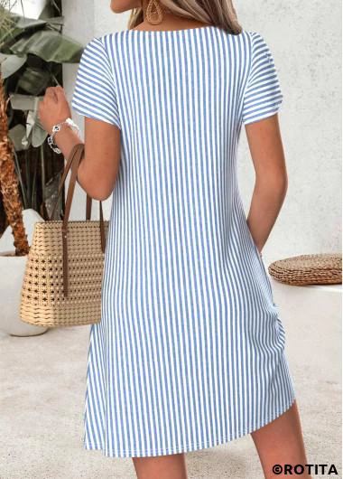 Function:Flowy,Tummy Coverage Package Contents:1 X Dress Color:Blue Printing Design:Striped,Geometric, Print Placement Will Vary Clothing Length:Short Sleeve's Length:Short Sleeve Neckline:Asymmetrical Neck Sleeve Style:Petal Sleeve Placket Style:Pull On/Pullover Style:Casual Occasion:Everyday Composition:95% Polyester 5% Spandex Washing Instructions:Hand Wash/Machine Wash Selling Point:Soft,Button