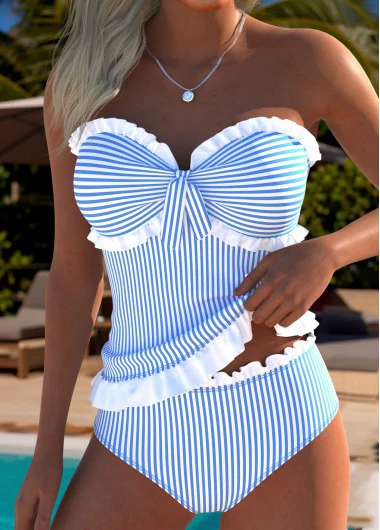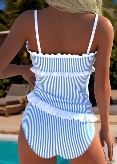 Home > Swimwear > Tankinis > Tankini Sets/ ROTITA Blue Tie Striped High Waisted Tankini Set