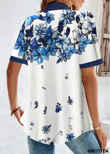 Home > Tops > Shirts/ ROTITA Button Floral Print White Shirt Collar Blouse