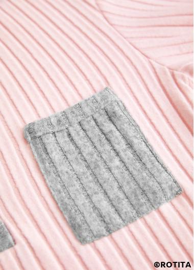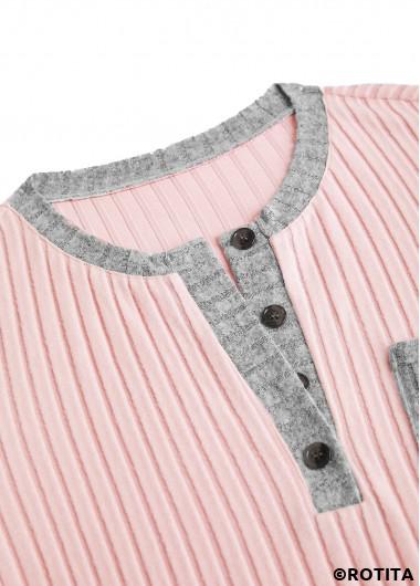 ROTITA Button Light Pink Split Neck Long Sleeve Sweatshirt