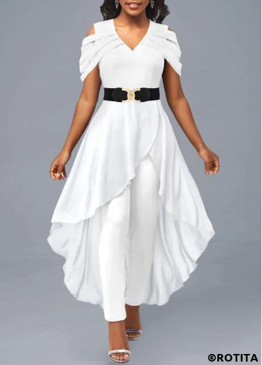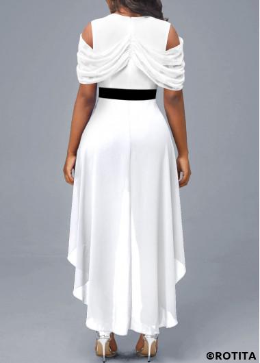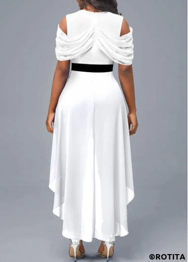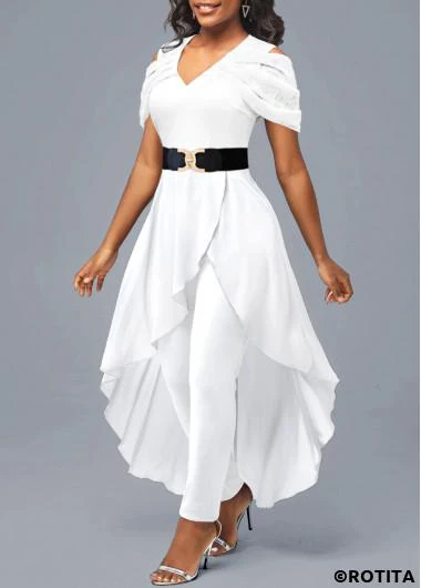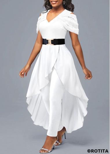 Sale ROTITA Cold Shoulder V Neck White Jumpsuit