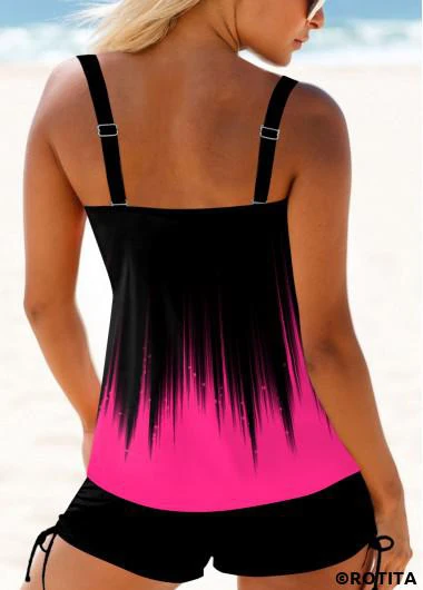 Home > Swimwear > Tankinis > Tankini Tops/ ROTITA Cross Front Ombre Rose Red Tankini Top-No Bottom