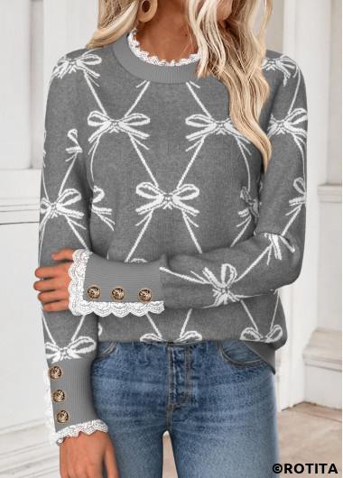Home > Tops > Sweatshirts&Hoodies/ ROTITA Curved Hem Butterfly Print Light Grey Marl Sweatshirt