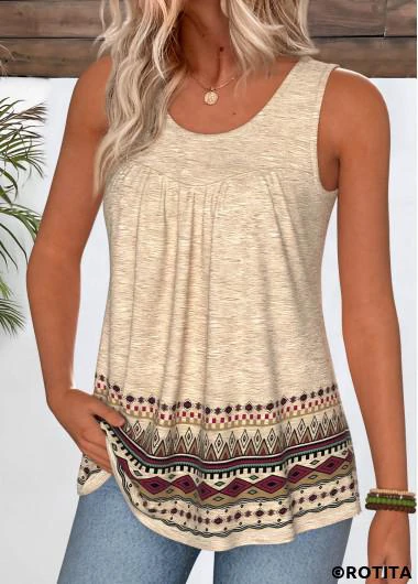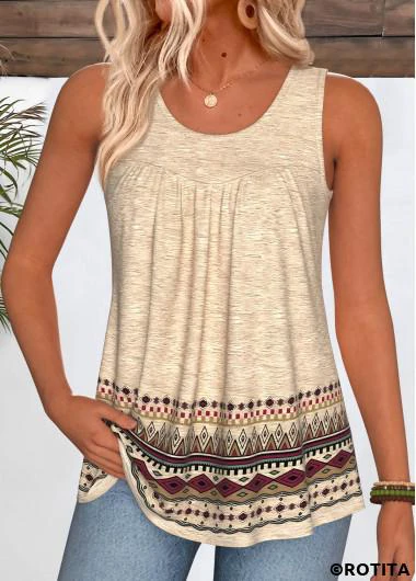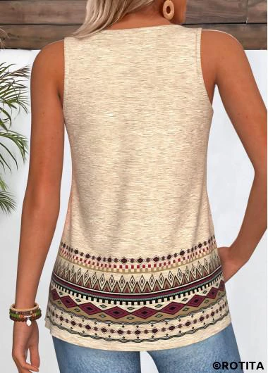 Home > Tops > Tank Tops & Camis/ ROTITA Curved Hem Tribal Print Light Camel Sleeveless Tank Top