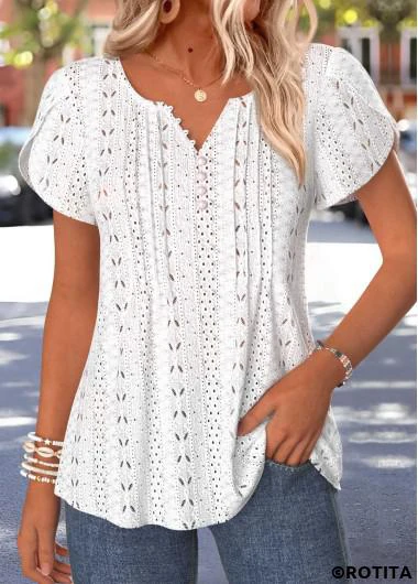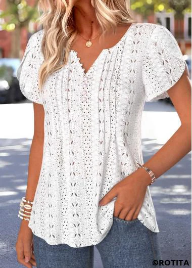 New In ROTITA Curved Hem White Split Neck Short Sleeve T Shirt