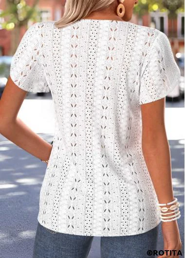 Home > Tops > Tees&T-shirts/ ROTITA Curved Hem White Split Neck Short Sleeve T Shirt