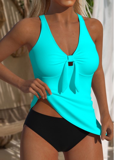 Flexible Sizing ROTITA Cyan Ruched V Neck Tankini Set