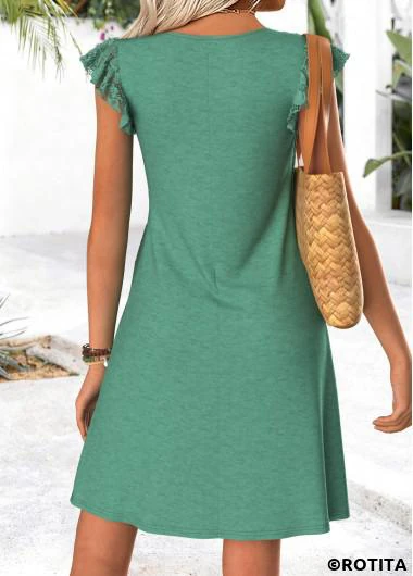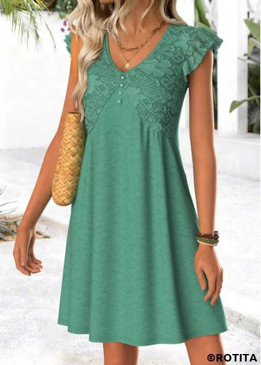 Home > Dresses/ ROTITA Cyan Tummy Coverage Short V Neck Dress