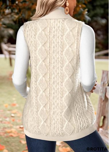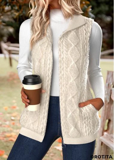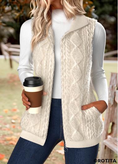 Home > Tops > Vests&Waistcoats/ ROTITA Double Side Pockets Beige Stand Collar Sleeveless Waistcoat