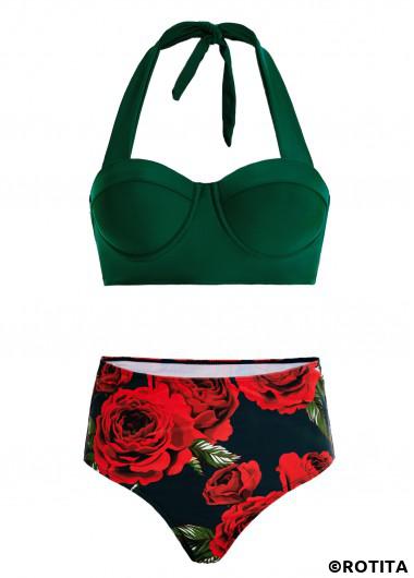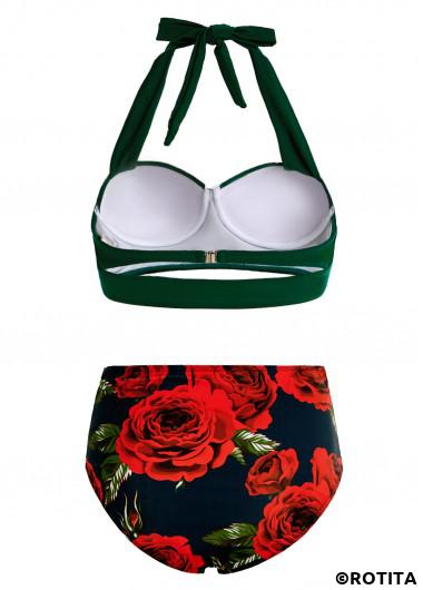 > Swimwear > Bikinis > Bikini Sets/ ROTITA Floral Print High Waist Halter Bikini Set