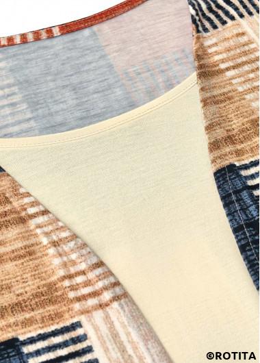ROTITA Geometric Print Short Sleeve Fake Two Piece Twinset