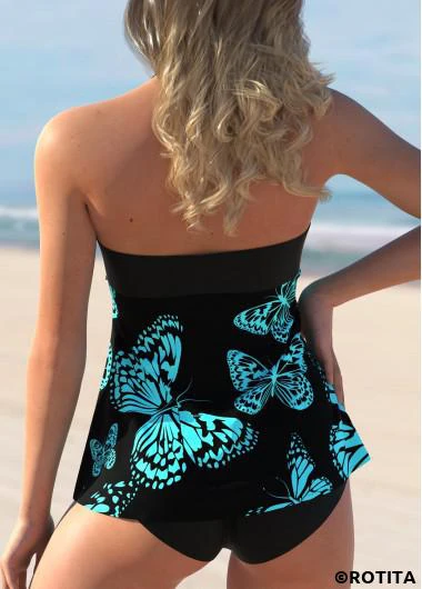 Sale ROTITA Halter Butterfly Print Bowknot Tankini Set
