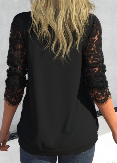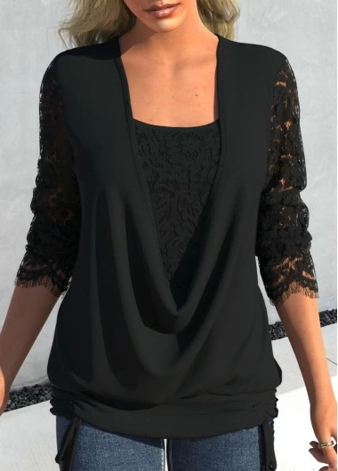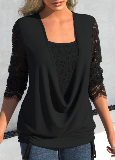 Home > Tops > Tees&T-shirts/ ROTITA Lace Black Square Neck Long Sleeve T Shirt