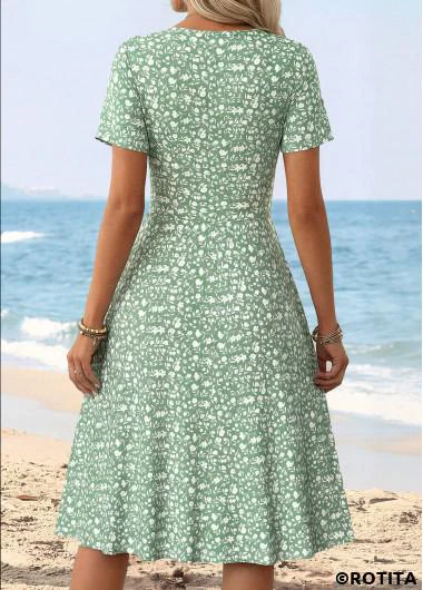 ROTITA Light Green Ditsy Floral Print Surplice V Neck Dress