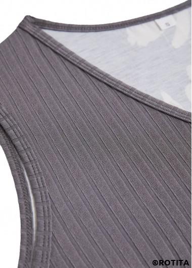 Home > Dresses/ ROTITA Patchwork Floral Print Dark Grey A Line Sleeveless Dress