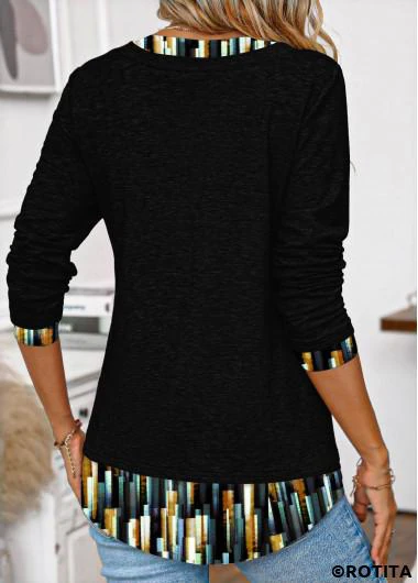 Function:Tummy Coverage,Soft Selling Point:Patchwork,Fake 2in1,Eyelet,Mélange yarn Package Contents:1 X T Shirt , Without Necklace Color:Black Printing Design:Ombre Clothing Length:Tunic Sleeve's Length:Long Sleeve Neckline:Split Neck Sleeve Style:Regular Sleeve Placket Style:Pull On/Pullover Style:Casual Occasion:Everyday Composition:60% Polyester 35% Rayon 5% Spandex Washing Instructions:Hand Wash/Machine Wash
