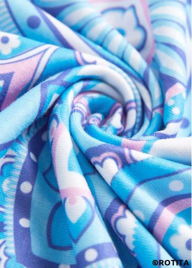 Embrace effortless charm in this light blue tribal-patterned midi dress. The sleeveless design and V-neck are enhanced with eyelet and patchwork details on the straps. Its A-line silhouette and medium length offer a flattering fit that conceals the midsection. Perfect for everyday wear, this dress combines casual style with unique, boho flair.