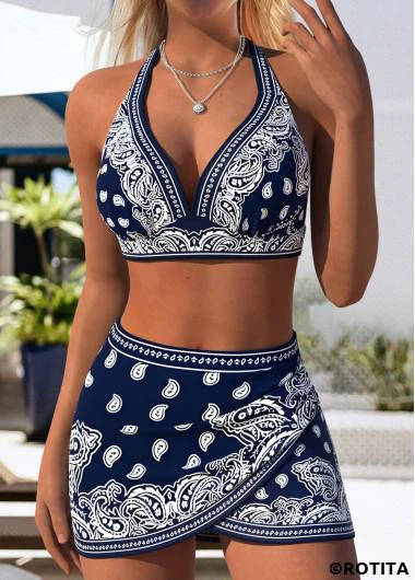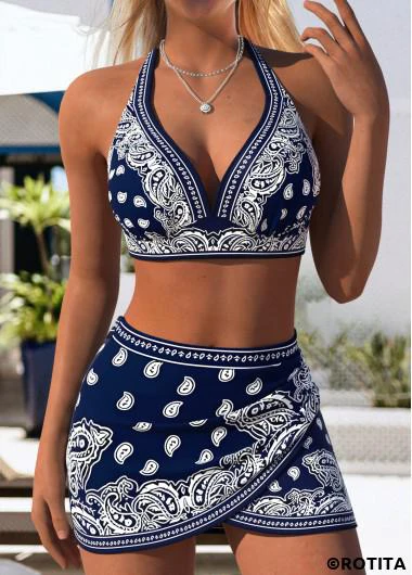Home > Swimwear > Bikinis > Bikini Sets/ ROTITA Pull On Navy Paisley Print Mid Waisted Bikini Set