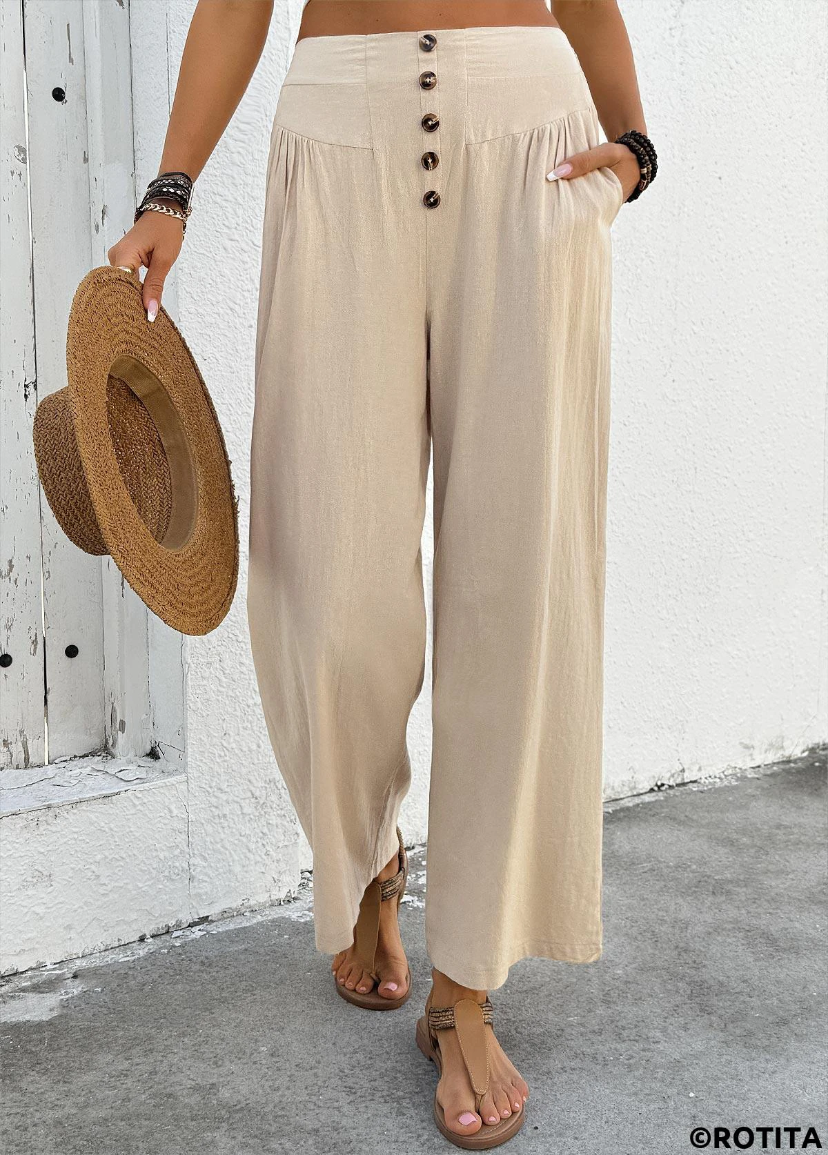 Home > Bottoms > Pants/ ROTITA Soft Light Camel Wide Leg Elastic Waist Pants