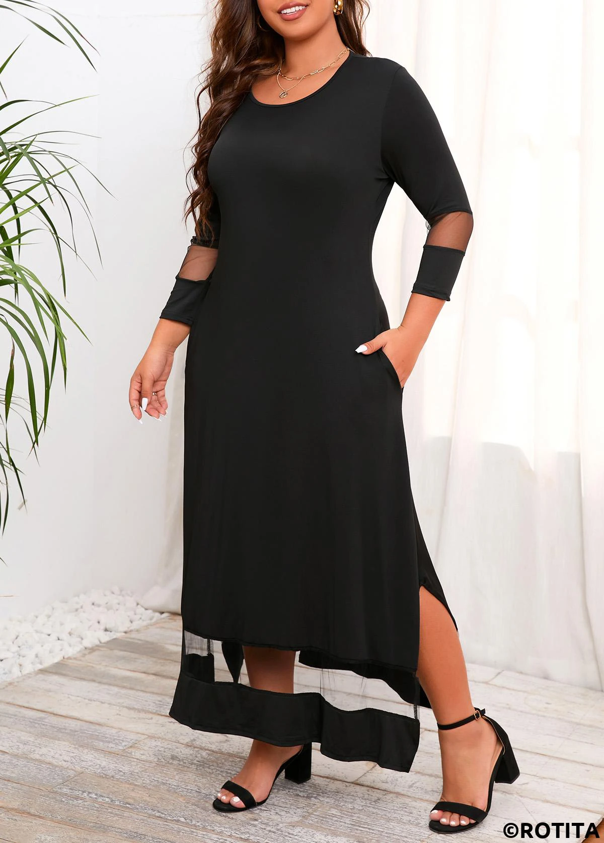 Home > Dresses/ ROTITA Split Black Maxi Round Neck 3/4 Sleeve Dress