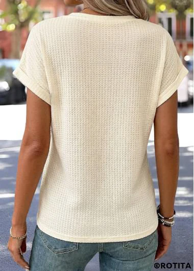 New In ROTITA Surplice Beige Round Neck Short Sleeve T Shirt
