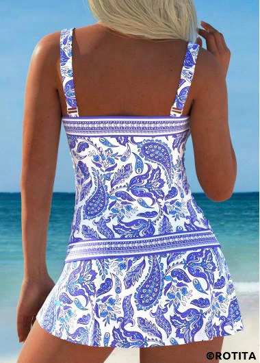Home > Swimwear > Tankinis > Tankini Sets/ ROTITA Thigh Slimmer Purple Paisley Print Mid Waisted Tankini Set