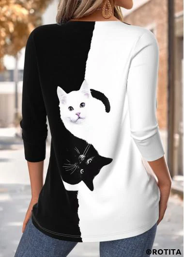 Home > Tops > Tees&T-shirts/ ROTITA Tummy Coverage Animal Print Black V Neck T Shirt