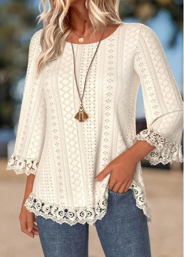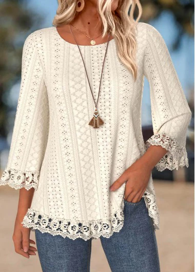 Function:Tummy Coverage Package Contents:1 X T Shirt Color:Beige Printing Design:Plain Color Clothing Length:High Low Sleeve's Length:3/4 Sleeve Neckline:Round Neck Sleeve Style:Flared Sleeve Placket Style:Pull On/Pullover Style:Casual Composition:95% Polyester 5% Spandex Washing Instructions:Hand Wash/Machine Wash Selling Point:Hollowedout/Lace/Openwork,Button,Shirred,lace trim,Patchwork