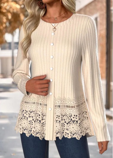 Home > Tops > Tees&T-shirts/ ROTITA Tummy Coverage Beige Round Neck Long Sleeve T Shirt