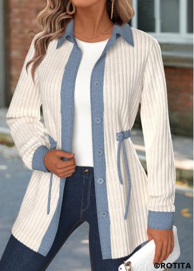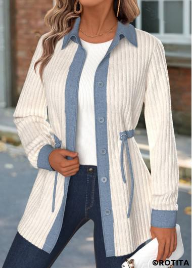 Home > Tops > Outerwear&Coats > Coats/ ROTITA Tummy Coverage Beige Shirt Collar Long Sleeve Coat