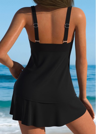 Home > Swimwear > Tankinis > Tankini Sets/ ROTITA Tummy Coverage Black Striped Mid Waisted Tankini Set