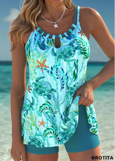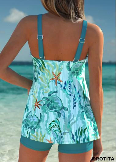 Home > Swimwear > Tankinis > Tankini Sets/ ROTITA Tummy Coverage Cyan Marine Life Print Tankini Set