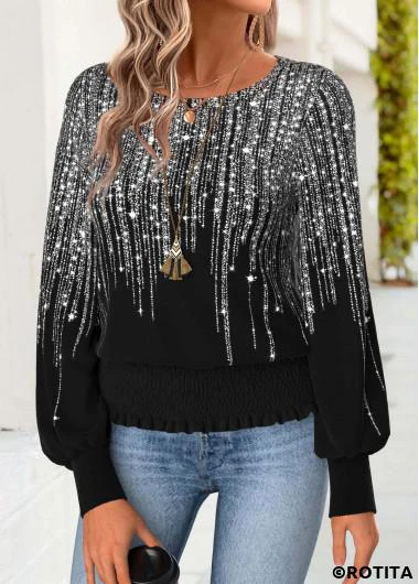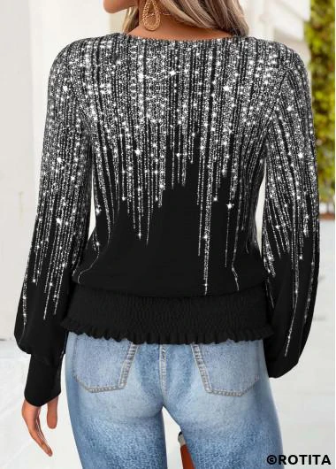 Home > Tops > Tees&T-shirts/ ROTITA Tummy Coverage Dazzle Colorful Print Black T Shirt