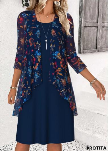 Home > Dresses/ ROTITA Tummy Coverage Ditsy Floral Print Navy Dress and Cardigan