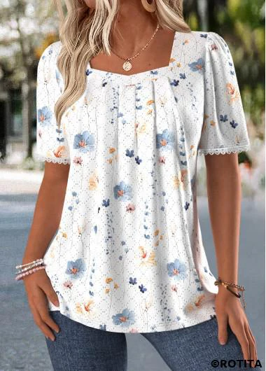 Home > Tops > Tees&T-shirts/ ROTITA Tummy Coverage Ditsy Floral Print White T Shirt
