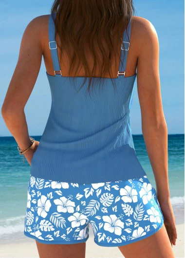 Home > Swimwear > Tankinis > Tankini Sets/ ROTITA Tummy Coverage Dusty Blue Floral Print Tankini Set
