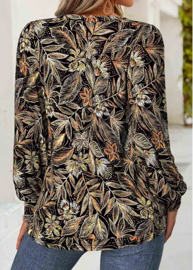 Home > Tops > Tees&T-shirts/ ROTITA Tummy Coverage Floral Print Black V Neck T Shirt