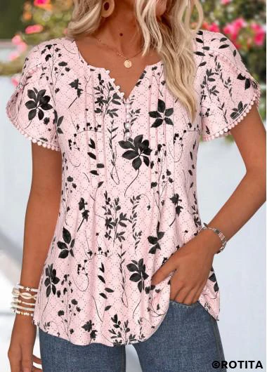 Function:Tummy Coverage Package Contents:1 X T Shirt Color:Light Pink Printing Design:Floral,Plants Clothing Length:Tunic Sleeve's Length:Short Sleeve Neckline:Split Neck Placket Style:Pull On/Pullover Style:Casual Occasion:Everyday Composition:95% Polyester 5% Spandex Washing Instructions:Hand Wash/Machine Wash Selling Point:Waffle texture,Button,Tuck stitch,Curved hem,Patchwork