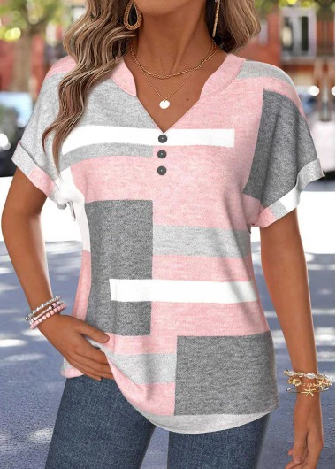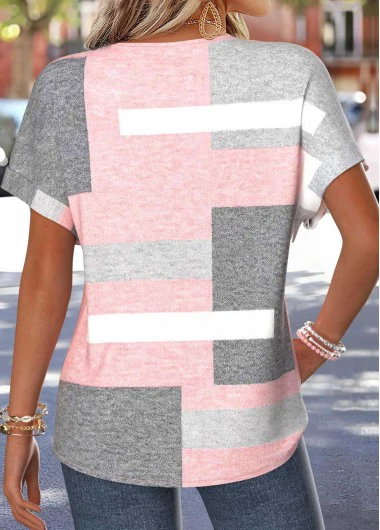ROTITA Tummy Coverage Geometric Print Light Pink T Shirt