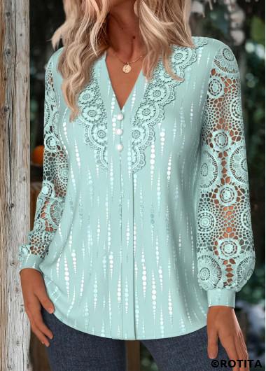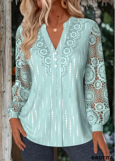 Home > Tops > Shirts/ ROTITA Tummy Coverage Geometric Print Mint Green Split Neck Shirt