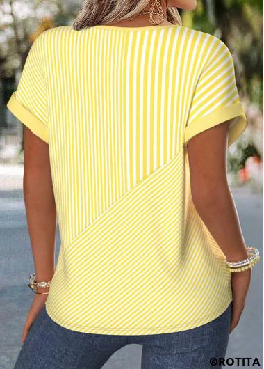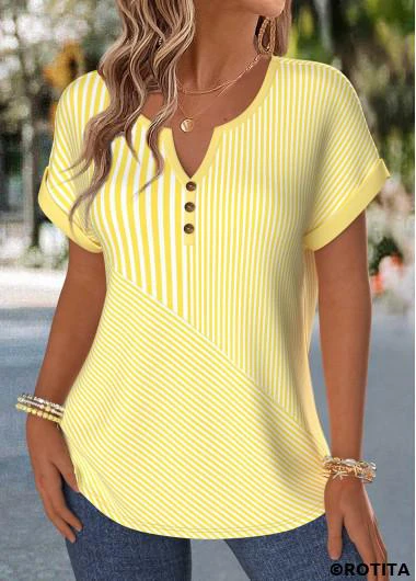 Home > Tops > Blouses/ ROTITA Tummy Coverage Geometric Print Yellow Split Neck Blouse