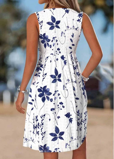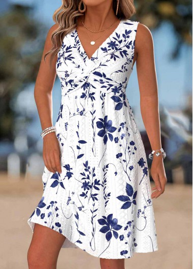 Home > Dresses/ ROTITA Tummy Coverage Leaf Print White Short V Neck Dress