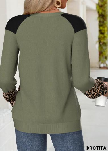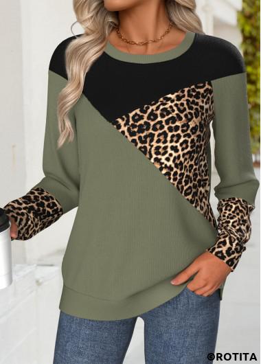 Home > Tops > Sweatshirts&Hoodies/ ROTITA Tummy Coverage Leopard Olive Green Round Neck Sweatshirt