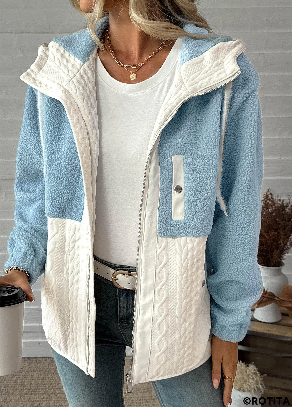 Home > Tops > Outerwear&Coats > Coats/ ROTITA Tummy Coverage Light Blue Hooded Long Sleeve Coat