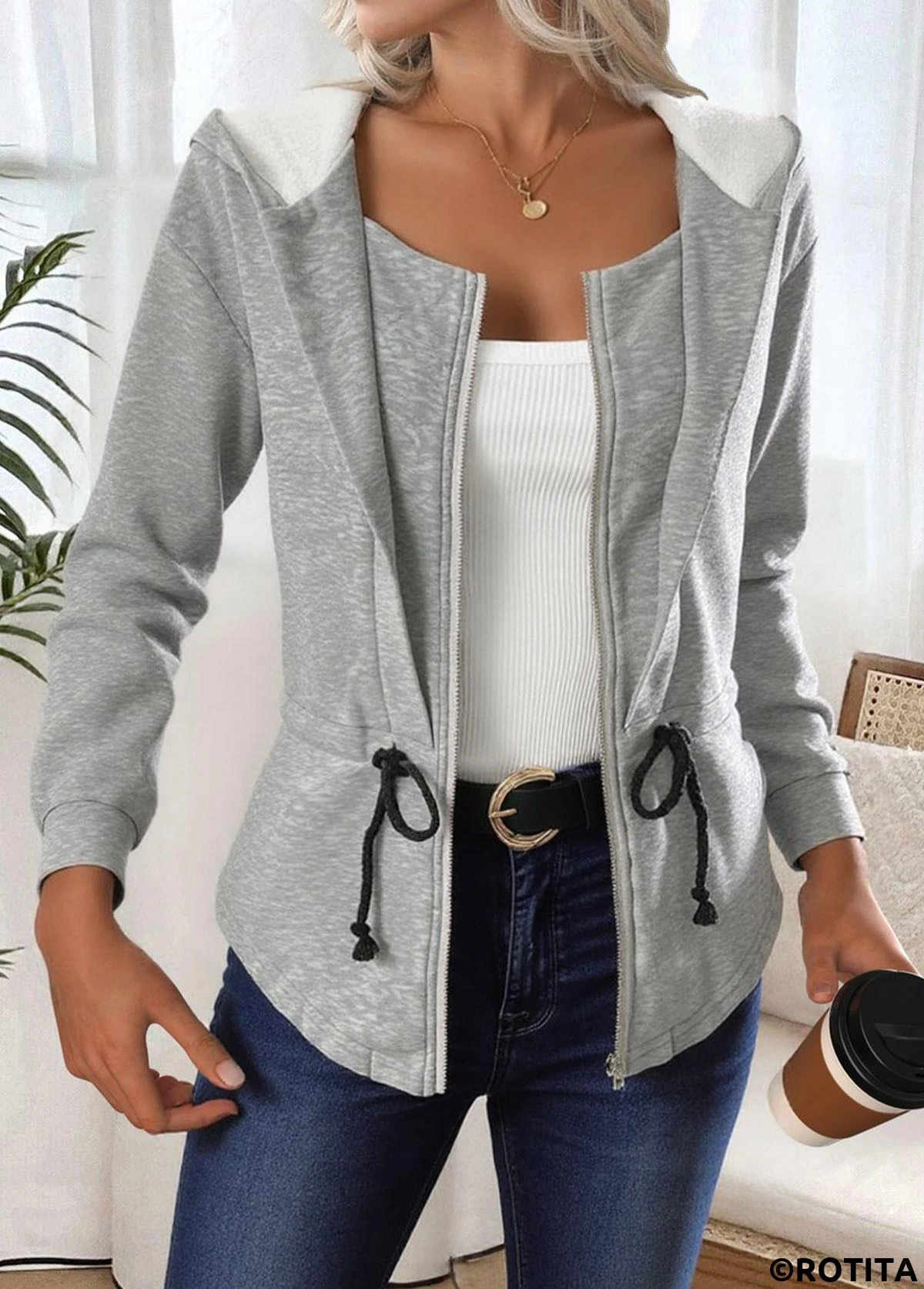 Home > Tops > Outerwear&Coats > Jackets/ ROTITA Tummy Coverage Light Grey Marl Hooded Track Jacket