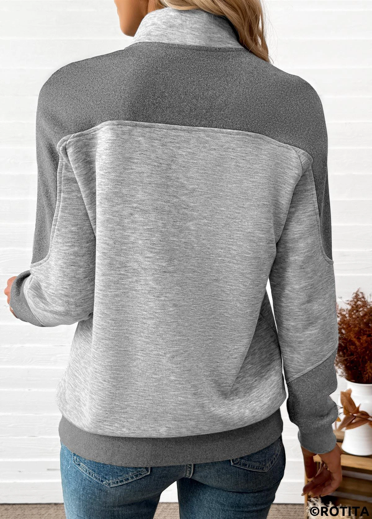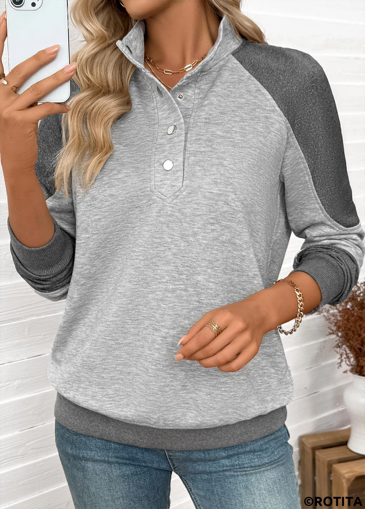 Home > Tops > Sweatshirts&Hoodies/ ROTITA Tummy Coverage Light Grey Marl Stand Collar Sweatshirt