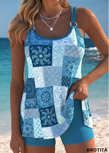Home > Swimwear > Tankinis > Tankini Sets/ ROTITA Tummy Coverage Light Pink Tribal Print Tankini Set