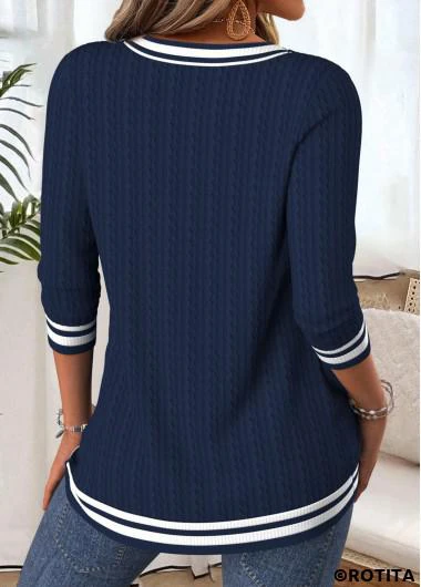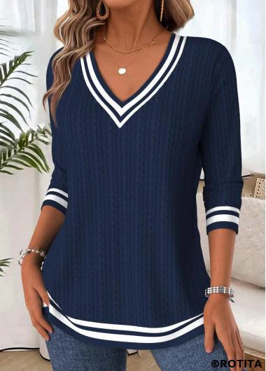 Home > Tops > Tees&T-shirts/ ROTITA Tummy Coverage Navy V Neck Long Sleeve T Shirt