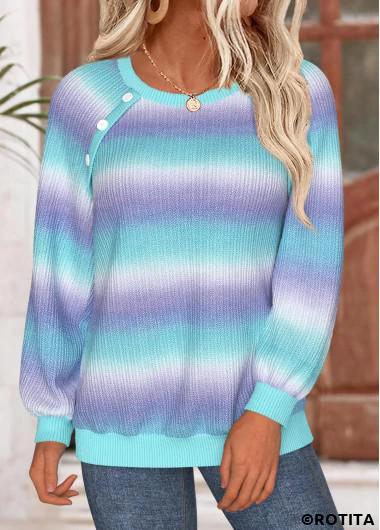 Home > Tops > Sweatshirts&Hoodies/ ROTITA Tummy Coverage Ombre Multi Color Round Neck Sweatshirt