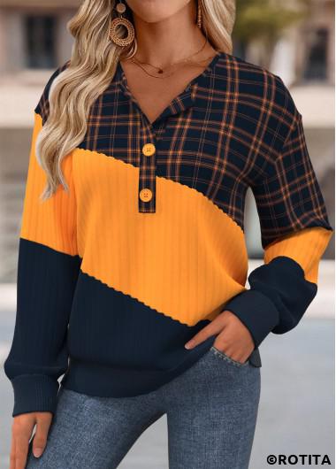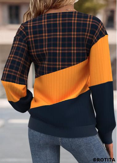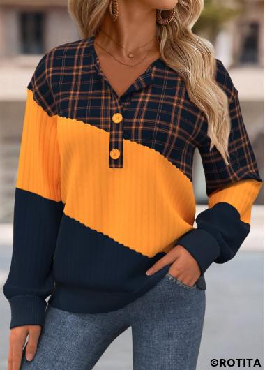 ROTITA Tummy Coverage Plaid Multi Color Split Neck Sweatshirt